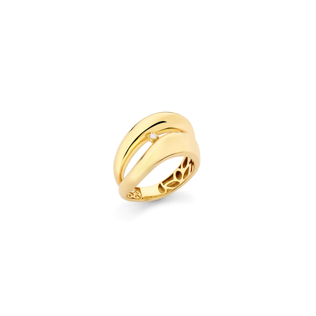 Anel em ouro amarelo 18k com 1 diamantes 0,03Ct - 2 Aros