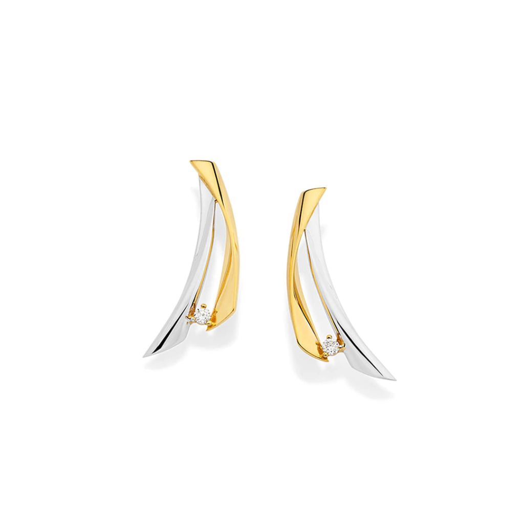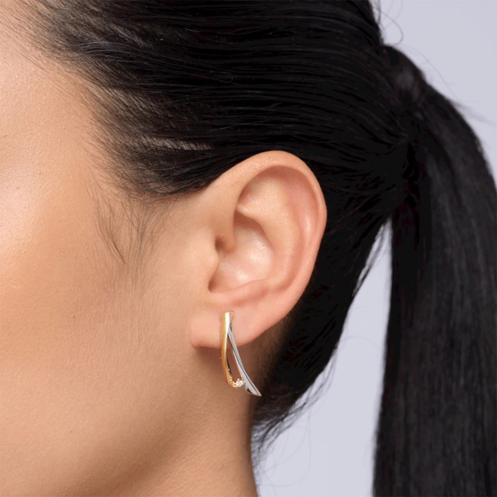 Brinco em ouro amarelo/branco 18k, com 2 brilhantes