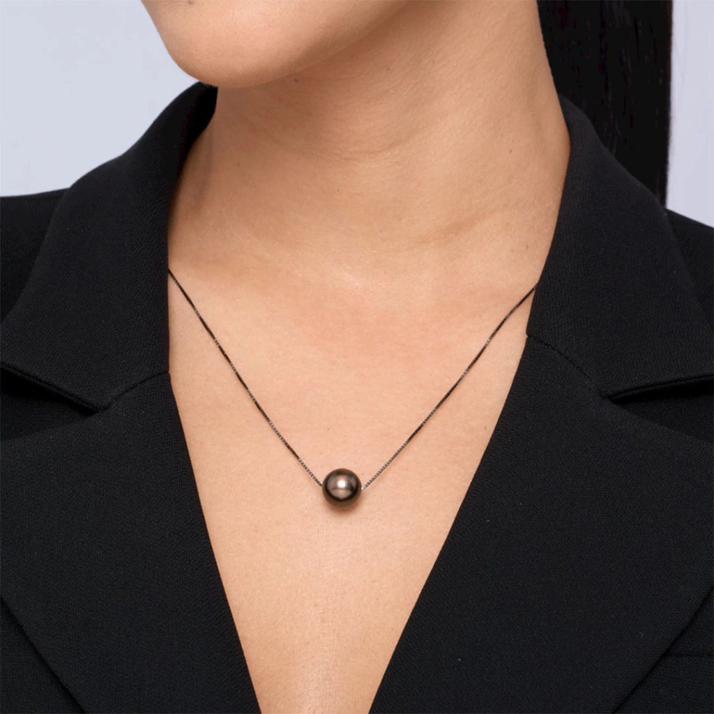 Gargantilha em ouro branco 18k, com pérola south sea negra