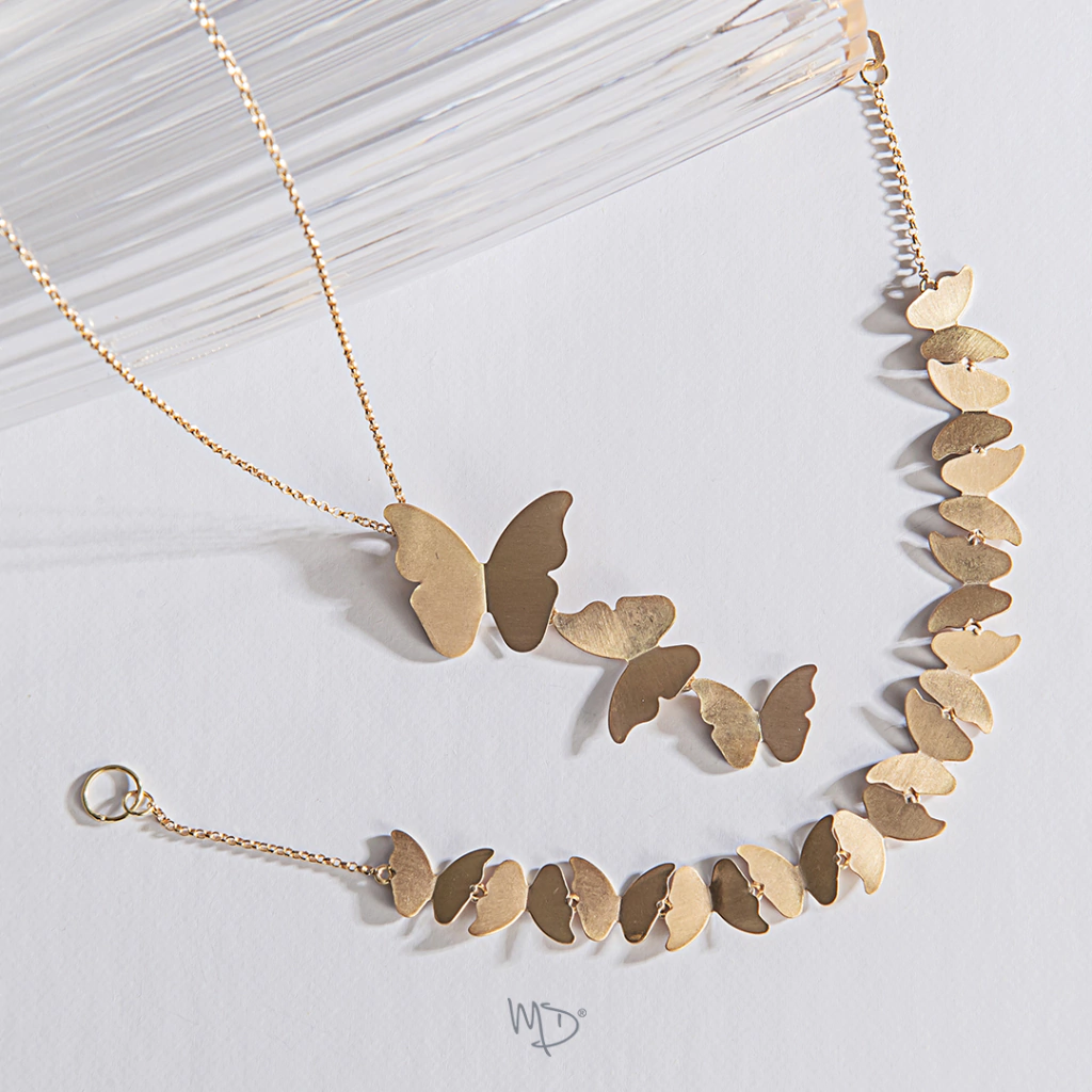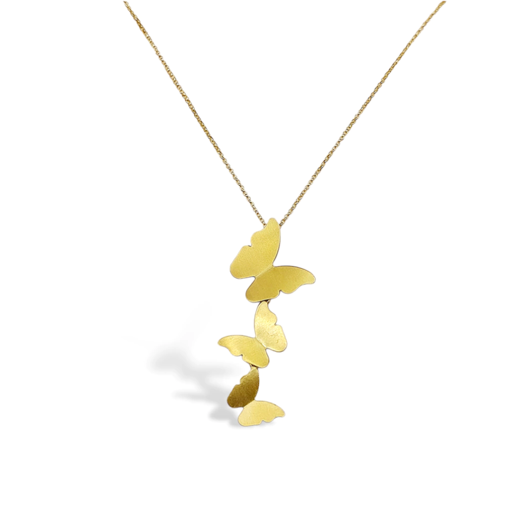 Gargantilha em ouro amarelo 18k com 3 borboletas - Elos portugueses 1mm / 45cm