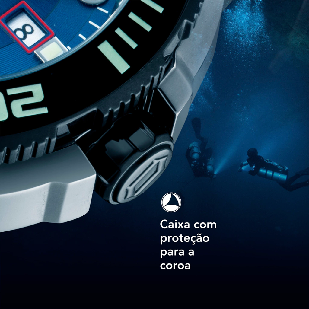 - Exclui-se da garantia componentes externos: vidro, caixa, pulseira (inclusive folheação), coroa, botões de ajuste, aro externo (catraca), fivela e bateria ou danos causados por uso inadequado por parte do consumidor.