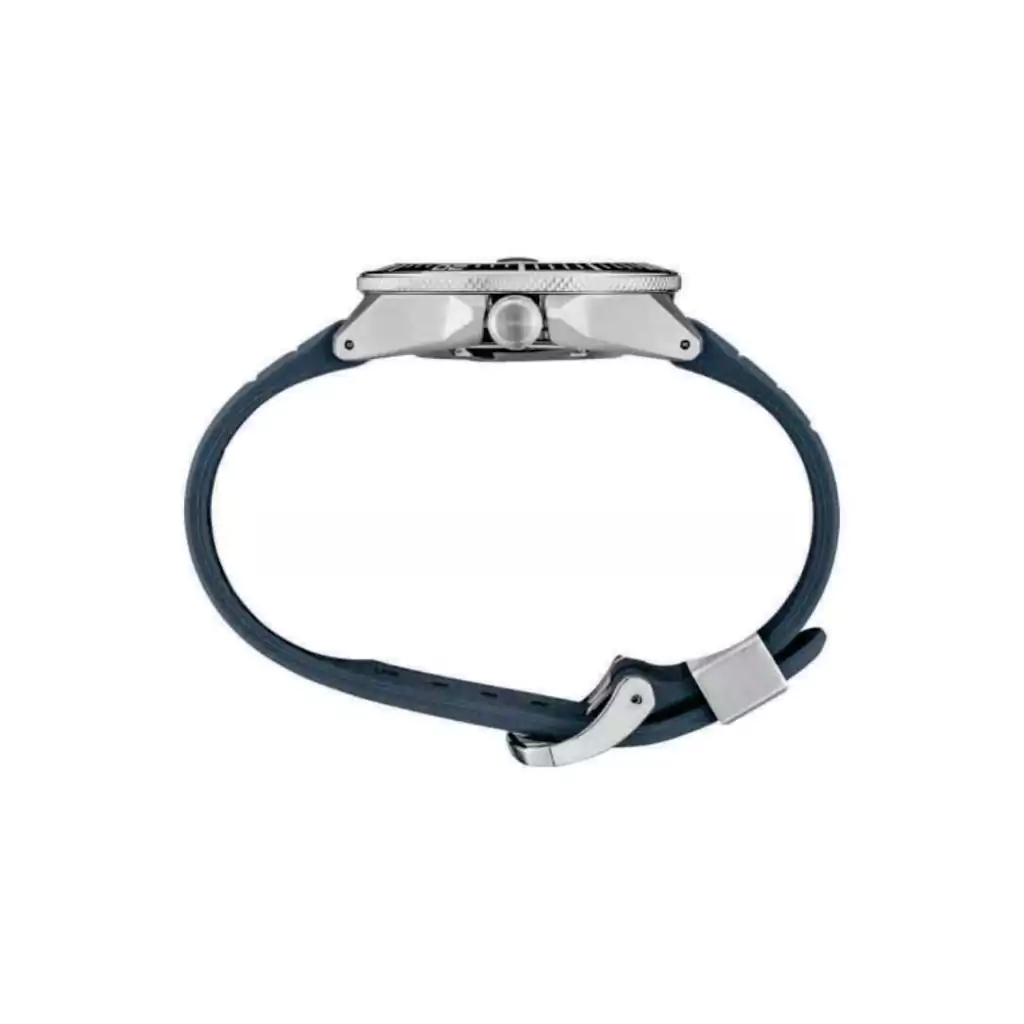 Apresentando um calendário de data ampliado e ponteiros e marcadores LumiBrite, o mostrador é emoldurado por uma luneta giratória unidirecional de cerâmica preta com tempo decorrido decorrido. Em aço inoxidável, com coroa e fundo rosqueados seguros, cristal de safira antirreflexo e pulseira de silicone azul profundo, este relógio de alta intensidade segue os padrões ISO para mergulho autônomo. 200m resistente à água.
